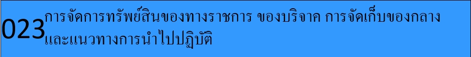 O23 การจัดการทรัพย์สิน ของราชการของบริจาค การจัดเก็บของกลางและแนวทางการปฏิบัติ